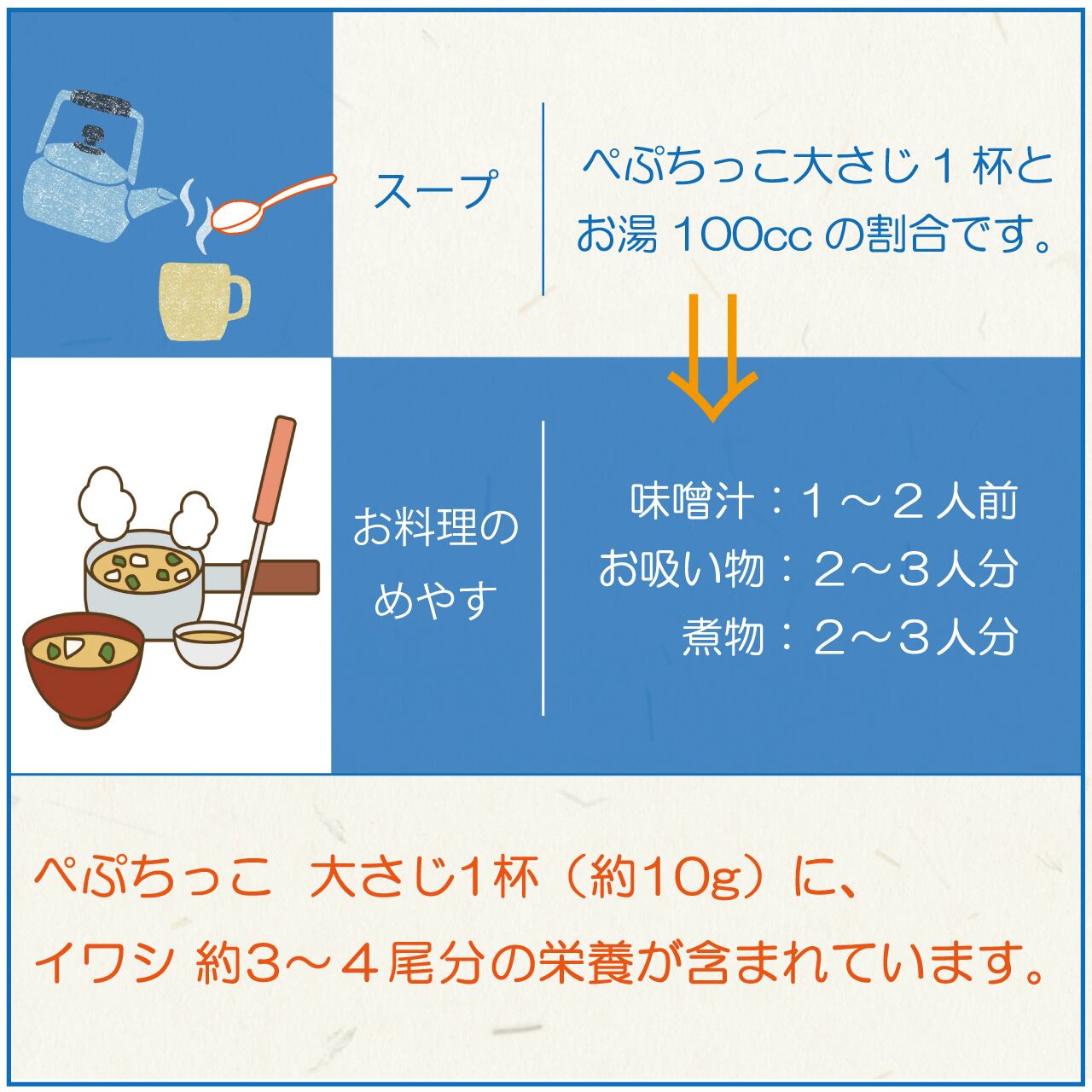 ・大匙約10gに、イワシ:約3匹分